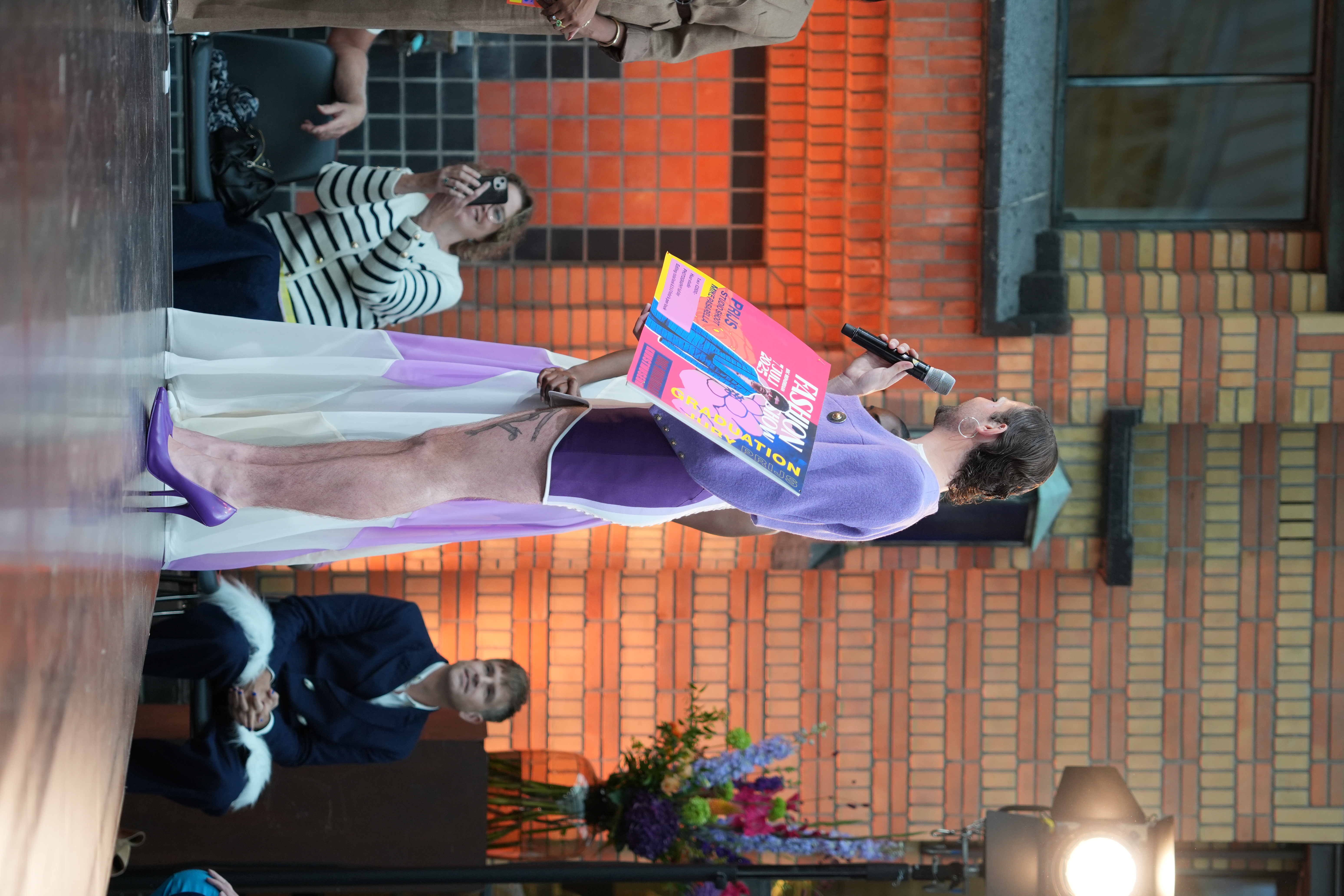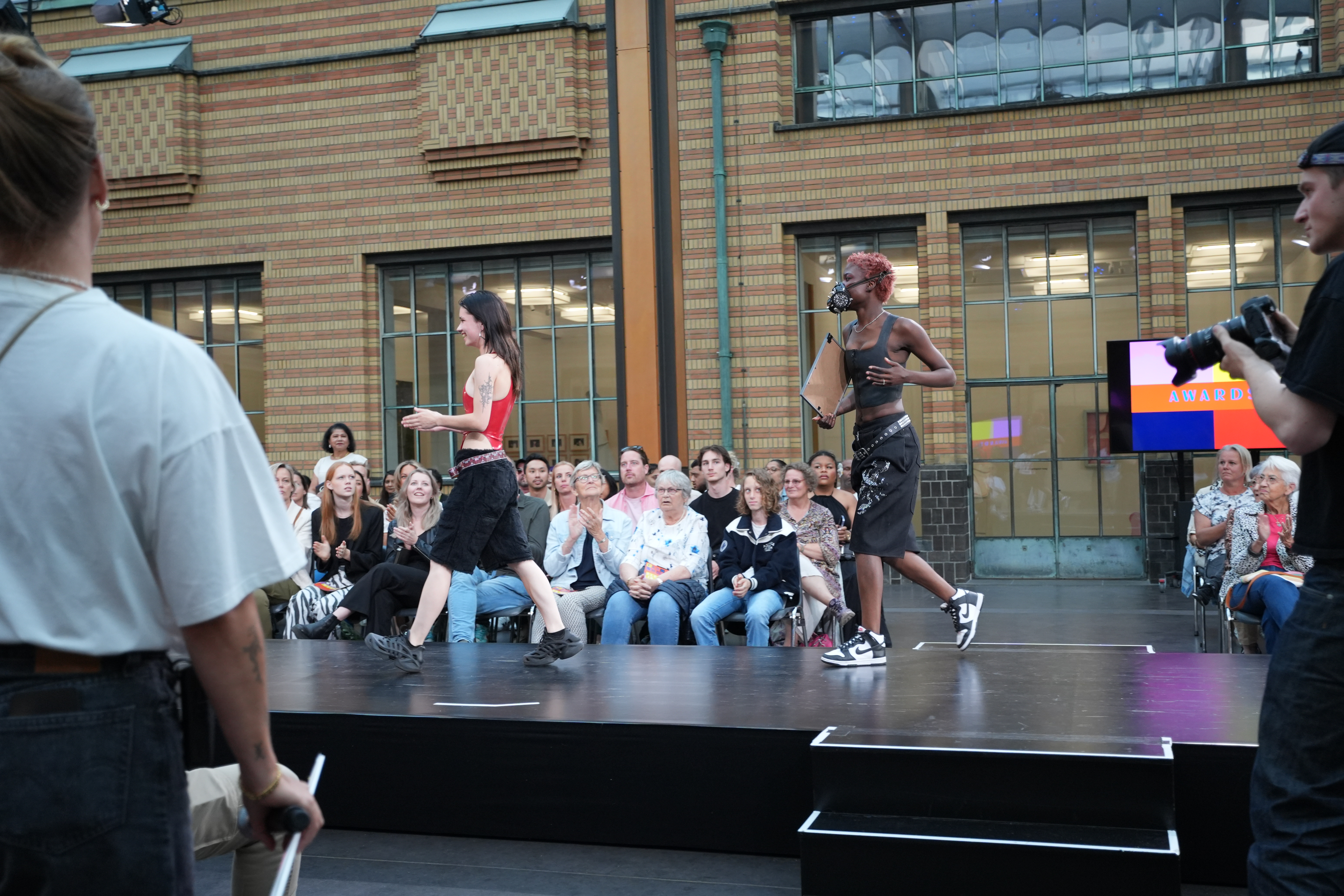 Een van de meest spraakmakende shows was The Final Chaos, waarin modellen het publiek betrokken bij een theatrale performance die zorgde voor kippenvel én een glimlach.De prijs voor Beste Graduation Collectie ging naar student Waddy, met diens indringende collectie In My Name, waarin het persoonlijke verhaal over queer-zijn werd vertaald naar de collectie. Waddy vertelt: “Ik ben in een veilige omgeving geboren, maar in de buitenwereld bleek die veiligheid niet vanzelfsprekend. Toch bleef ik trouw aan mijn identiteit. Ik ben sterker dan ooit en wil andere queers helpen, gewoon door te bestaan, en te weigeren me te verstoppen. Vorig jaar heb ik ook gewonnen, maar volgend jaar gaat de prijs sowieso naar iemand anders, want dan zit ik op AMFI, de hbo-modeopleiding in Amsterdam. Waarom ik gewonnen heb, weet ik eigenlijk niet meer precies. De jury heeft het me wel verteld, maar ik was zo in extase dat het grotendeels langs me heen ging. Wel weet ik nog dat ze het heel indrukwekkend vonden dat mijn kleding a-symetrisch is. Dat geeft bijna twee keer zoveel werk. Wat ik ook heel mooi vond is dat een medestudente me zei dat haar neefje waarmee ze naar de show was gekomen, haar had verteld dat hij mijn show geweldig vond en dat het hem hielp om trots te zijn.”